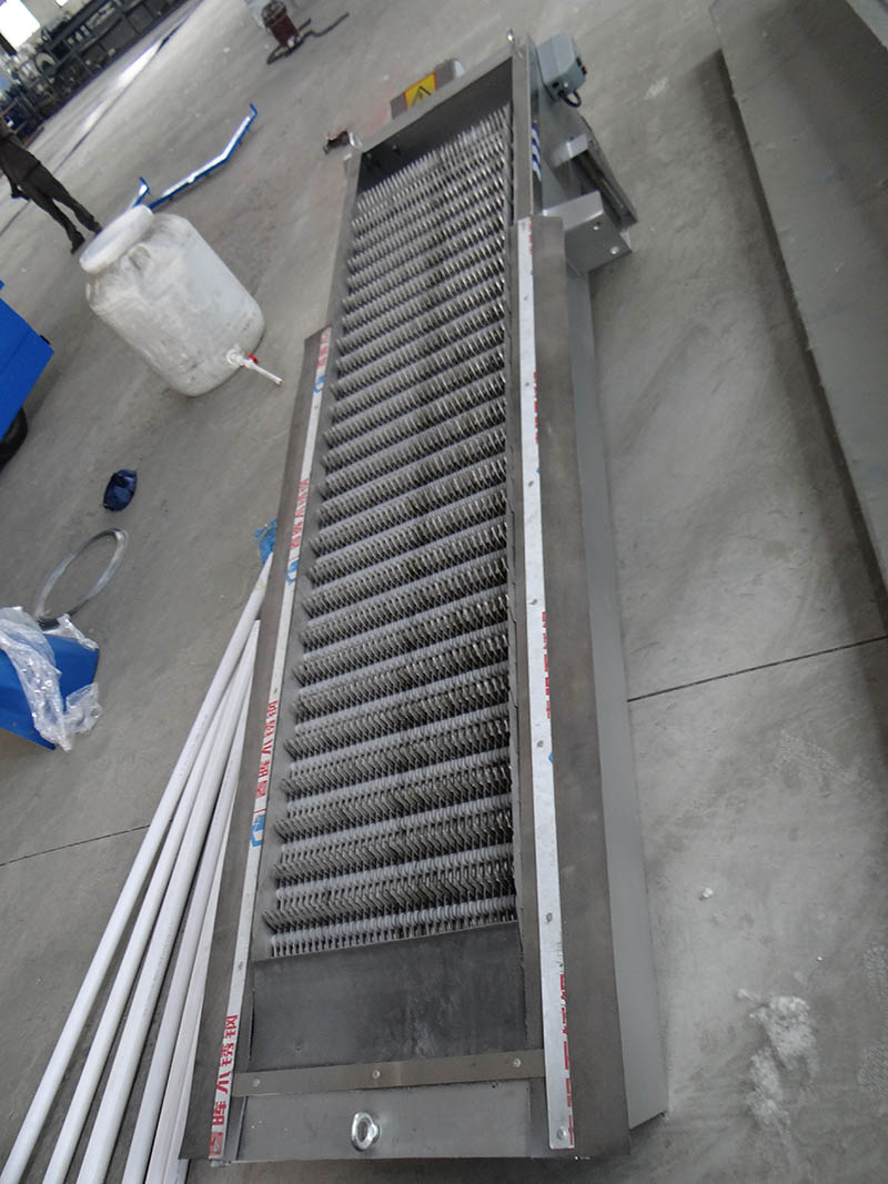 生產(chǎn)排放的污水經(jīng)管網(wǎng)系統(tǒng)匯集后,經(jīng)粗格柵后進入后續(xù)處理系統(tǒng)。粗格柵主要用來攔截污水中的大塊漂浮物,以保證后續(xù)處理構(gòu)筑物的正常運行及有效減輕處理負(fù)荷,為系統(tǒng)的長期正常運行提供保證。